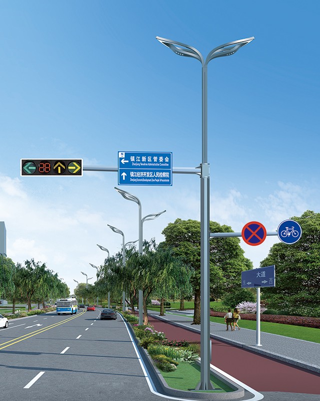 桿件規格: 1.立桿高度:立柱8-10米,橫臂3-15米。厚度6-12mm 2.桿件材質:優質Q235鋼材,表面熱鍍鋅,可選擇噴塑處理 3.配套標志牌、信號燈、監控設備、道路照明 4.造型:F型2F型、3F型、T型 5.質保:10年